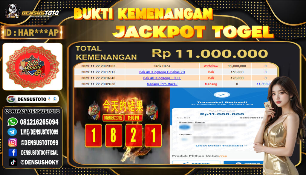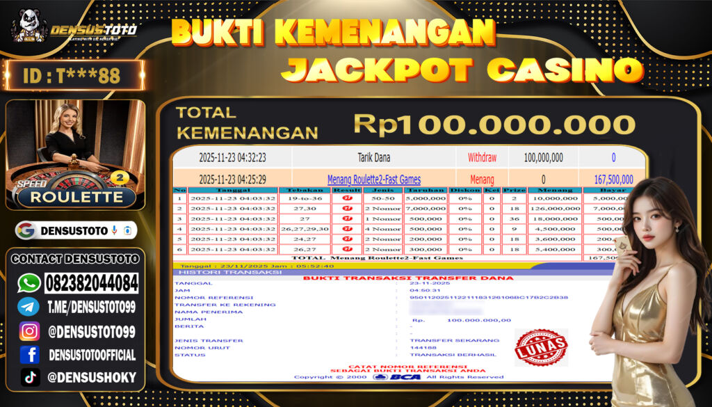 Fakta saja saat ini begitu aman dan terpercaya, DENSUS TOTO dapat dilunasi full kemenangan dapat anda temukan. Anda juga dapat memainkan semua pasaran yang saat ini kami sedaikan seperti pasaran judi togel online terlengkap yang kami siapkan dengan gunakan 1 akun saja.