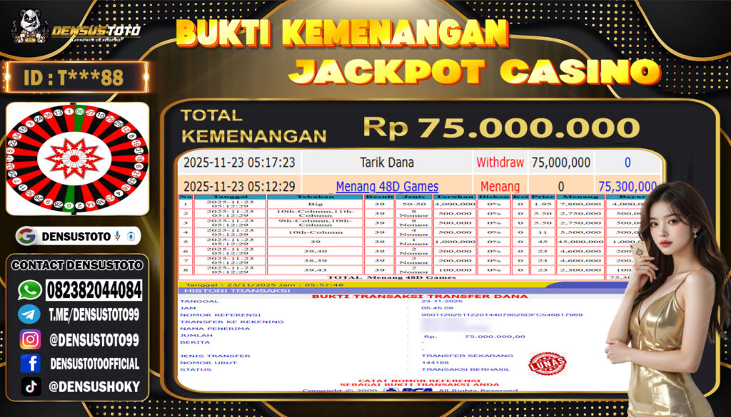 Menjadi pemain judi online pastilah anda begitu pingin berasa bonus dan promo yang disiapkan oleh DENSUS TOTO. Seluruhnya bonus dan promo yang kami siapkan dapat anda claim secara begitu mudah.