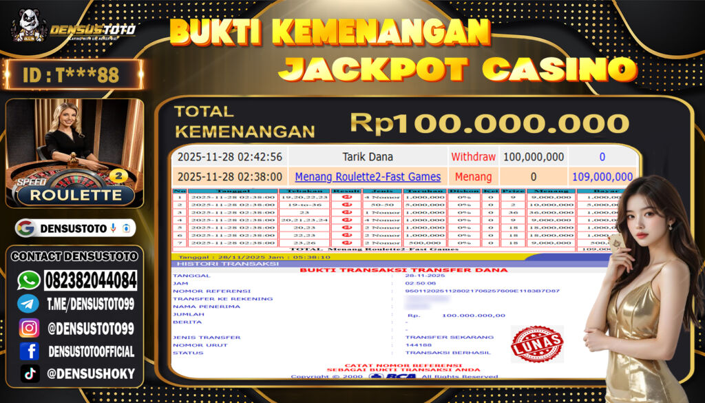 Demikian Mudah! anda semata-mata diperlukan mendeposit 10.000 buat memainkan semua permainan yang terdapat di DENSUS TOTO. Anda juga semata-mata diperlukan lakukan withdraw dengan paling sedikit 25.000