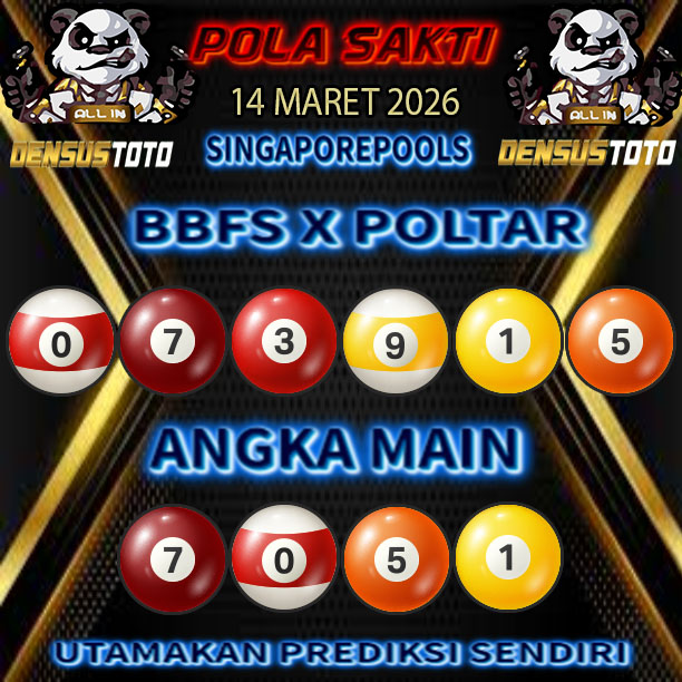 Prediksi DENSUSTOTO menyediakan Syair Togel Singapore resmi yang dapat anda saksikan dalam situs judi togel online ini. Setiap pemain judi togel online yang tidak memandang dan mengenal syair togel singapore pastilah kurang mujur buat mendapati angka keluaran togel terjitu. Lantaran itu sekarang situs judi togel online DENSUS TOTO sekarang akan memberikan anda bocoran bagaimana caranya mendapati nomor keluaran prediksi singapore dari syair togel sgp terjitu. Sekarang anda cuma perlu dan mengenal code syair singapore ini merupakan prediksi singapore yang dituang terdapat sifat code syair. Maka serius tidak bertanya-tanya jikalau sejumlah penggemar togel begitu menyintai prediksi syair togel ini. Buat prediksi syair singapore dapat dipakai buat bahan ketidaksamaan mencari angka jitu yang bisa keluar pada hari ini. Karenanya berhati-hatilah selalu pada setiap terdapat dipicu di situ dapat anda angka bermain 2D, 3D dan 4D