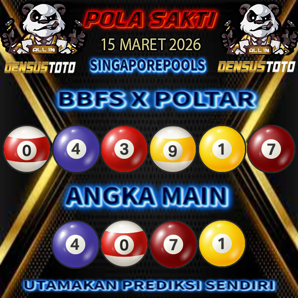 Prediksi DENSUSTOTO menyediakan Syair Togel Singapore resmi yang dapat anda saksikan dalam situs judi togel online ini. Setiap pemain judi togel online yang tidak memandang dan mengenal syair togel singapore pastilah kurang mujur buat mendapati angka keluaran togel terjitu. Lantaran itu sekarang situs judi togel online DENSUS TOTO sekarang akan memberikan anda bocoran bagaimana caranya mendapati nomor keluaran prediksi singapore dari syair togel sgp terjitu. Sekarang anda cuma perlu dan mengenal code syair singapore ini merupakan prediksi singapore yang dituang terdapat sifat code syair. Maka serius tidak bertanya-tanya jikalau sejumlah penggemar togel begitu menyintai prediksi syair togel ini. Buat prediksi syair singapore dapat dipakai buat bahan ketidaksamaan mencari angka jitu yang bisa keluar pada hari ini. Karenanya berhati-hatilah selalu pada setiap terdapat dipicu di situ dapat anda angka bermain 2D, 3D dan 4D