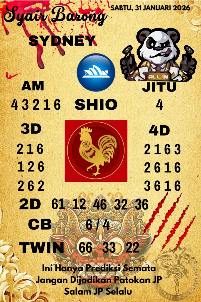 Syair Togel Sydney Lotto – 31 Januari 2026