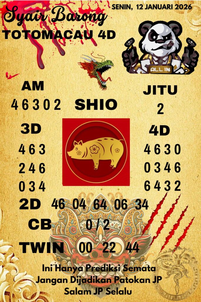 Prediksi DENSUSTOTO menyediakan Syair Togel Toto Macau resmi yang dapat anda saksikan dalam situs judi togel online ini. Setiap pemain judi togel online yang tidak memandang dan mengenal syair togel Toto Macau pastilah kurang mujur buat mendapati angka keluaran togel terjitu. Lantaran itu sekarang situs judi togel online DENSUS TOTO sekarang akan memberikan anda bocoran bagaimana caranya mendapati nomor keluaran prediksi Toto Macau dari syair togel sgp terjitu. Sekarang anda cuma perlu dan mengenal code syair Toto Macau ini merupakan prediksi Toto Macau yang dituang terdapat sifat code syair. Maka serius tidak bertanya-tanya jikalau sejumlah penggemar togel begitu menyintai prediksi syair togel ini. Buat prediksi syair Toto Macau dapat dipakai buat bahan ketidaksamaan mencari angka jitu yang bisa keluar pada hari ini. Karenanya berhati-hatilah selalu pada setiap terdapat dipicu di situ dapat anda angka bermain 2D, 3D dan 4D.